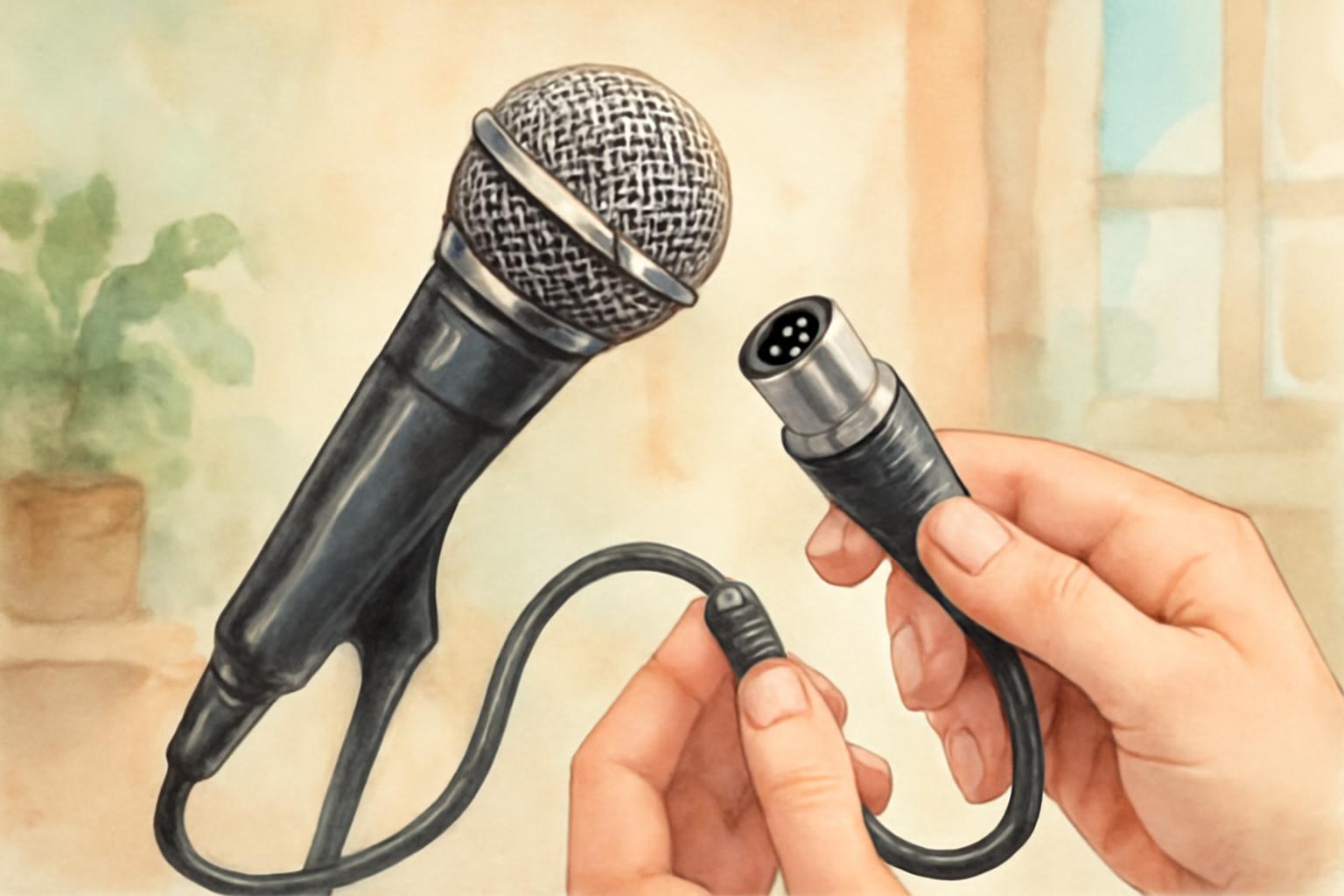 Для большинства домашних задач подойдёт симметричный микрофонный кабель с XLR‑разъёмами; он минимизирует шум и обеспечивает надёжное соединение.
