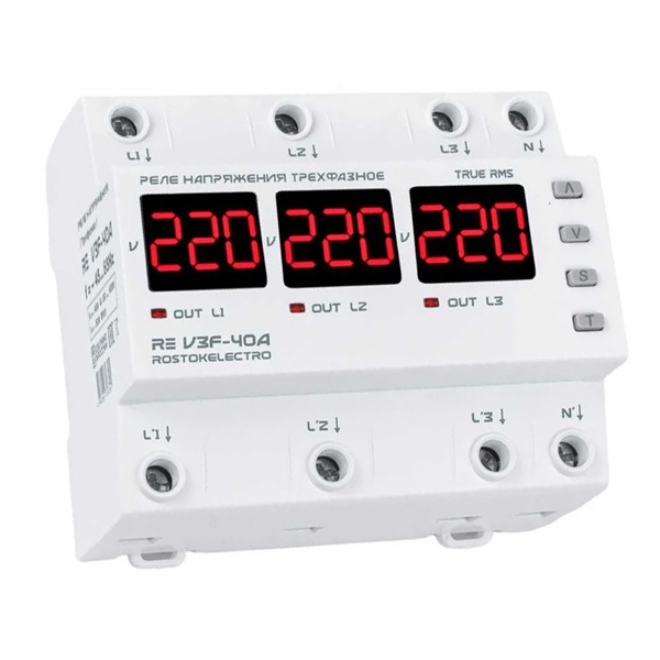 Реле напряжения трехфазное RE V3F-40A 380V ROSTOKELECTRO