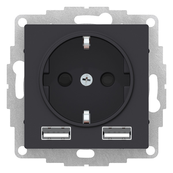 Systeme Electric ATLASDESIGN Розетка с заземлением и с 2 USB A+A, 2х5В/1,2А,16А, карбон ATN001030