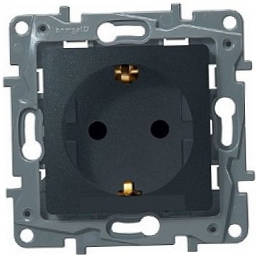 Legrand Etika розетка 1-я с заземлением со шторками антрацит