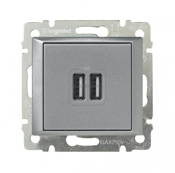 Legrand Valena розетка USB 2-я 1500 мА алюминий