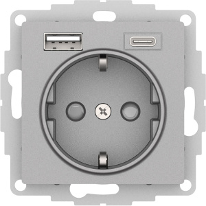 Systeme Electric ATLASDESIGN, розетка с заземлением 16А с USB A+C для зарядки алюминий ATN000332