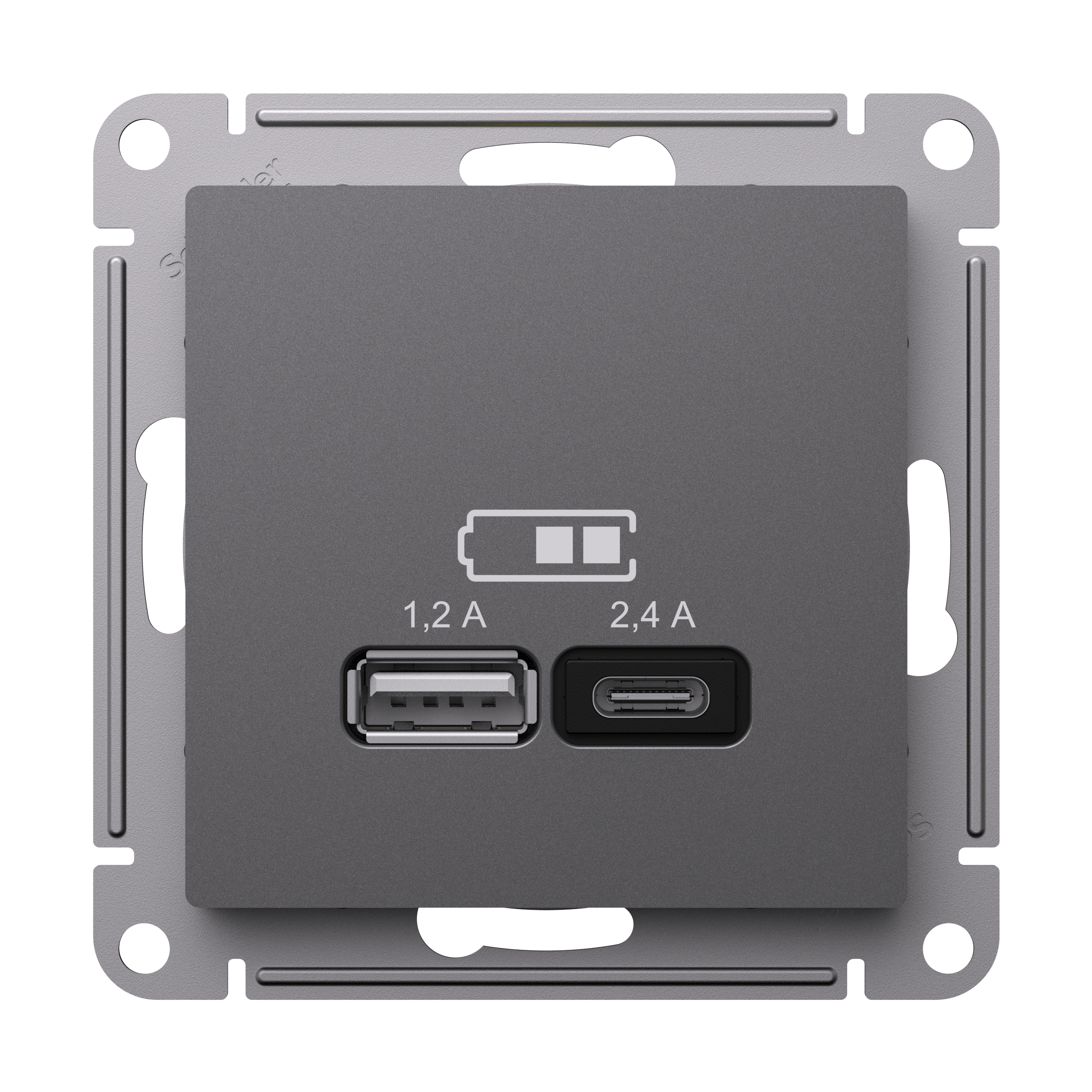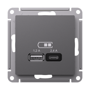 Systeme Electric ATLASDESIGN розетка 2xUSB (1.2A/2.4A) типы A и C для зарядки базальт ATN001439