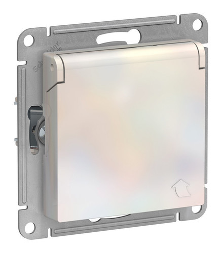 Systeme Electric ATLASDESIGN розетка 1-я с заземлением со шторками с крышкой IP20 жемчуг