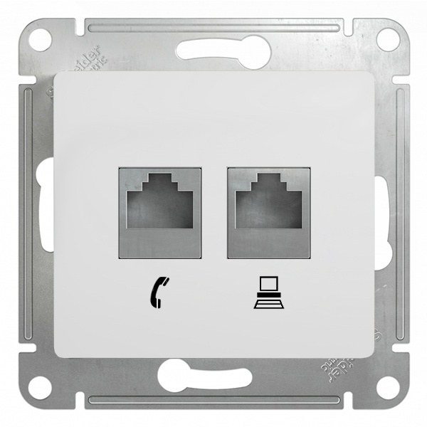 Glossa розетка двойная RJ45+RJ45 5е кат. перламутр